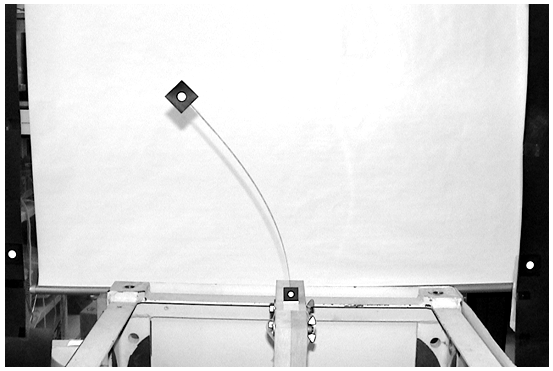 Štíhlý ocelový prut délky 30 cm, šířky 1 cm a tloušťky 0.3 mm (hmotnosti 9 g) byl vetknut ve vertikální pozici volným koncem vzhůru. Na volném konci prutu bylo upevněno ocelové závaží o hmotnosti 13.54 g, jehož přičiněním se dosáhlo pokritického stavu prutu.