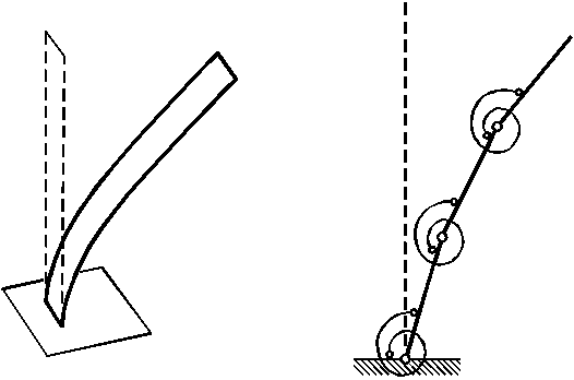 Obr. 2: Znázornění prutu v pokritickém tvaru a jeho modelu