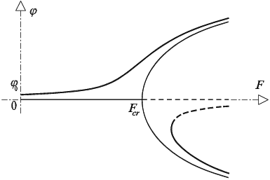 Je tedy zřejmé, že i poměrně jednoduché kvalitativní úvahy vycházející z teorie bifurkací mohou přinést velmi konkrétní výsledky, které lze snadno ověřit. Bifurkační hodnota parametru koresponduje s hledanou kritickou silou vzepjatého nosníku, stavová proměnná odpovídá vyjádření deformace.