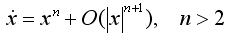 Uvažujme jednorozměrný dynamický systém s nehyperbolickým pevným bodem v počátku: