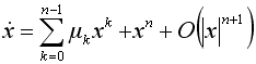V okolí bifurkačního bodu rozvineme definiční funkci systému do Taylorovy řady:
